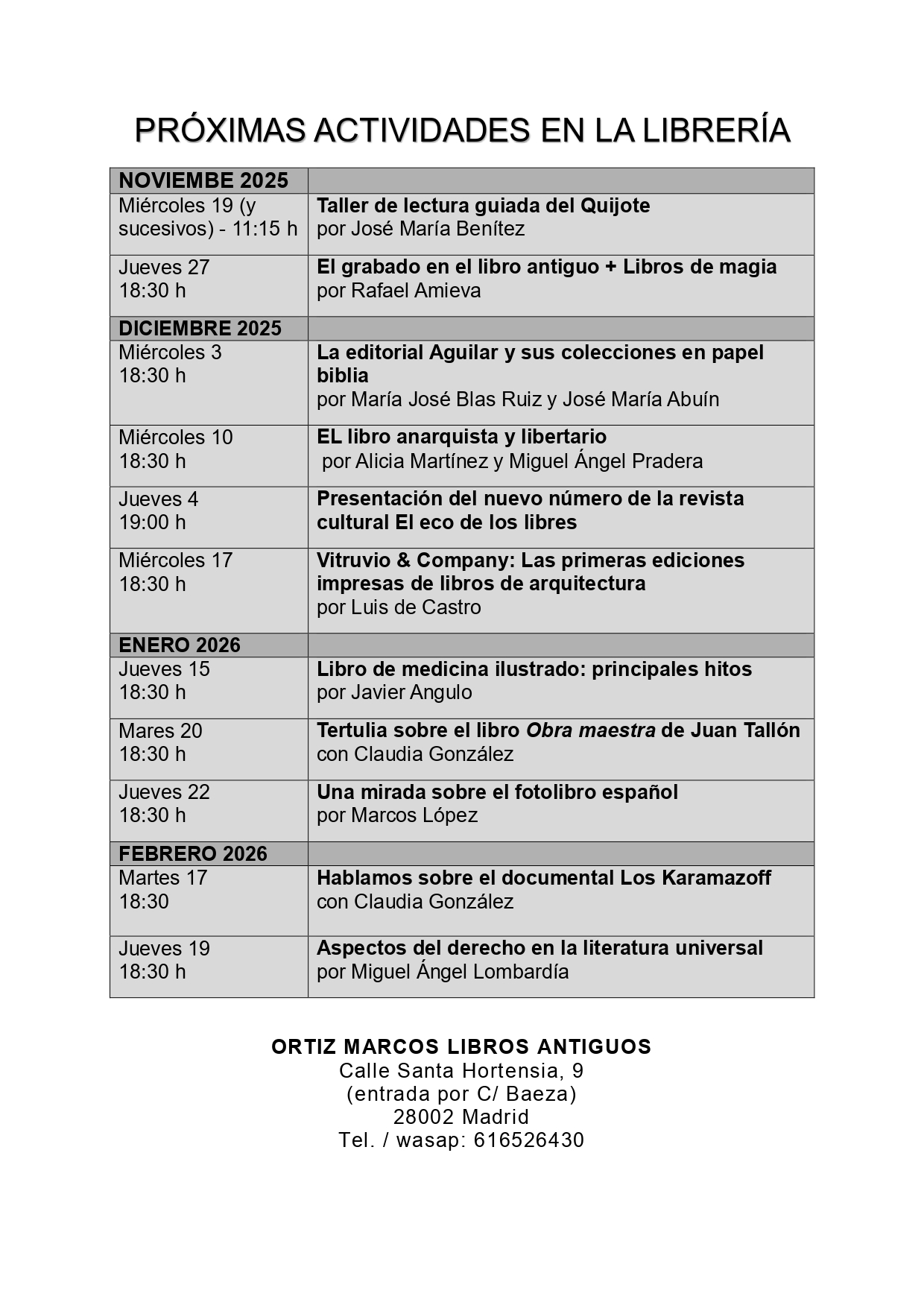 Inicio/EVENTOS EN LA LIBRERÍA NOVIEMBRE 2025 - FEBRERO 2026
